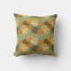 Esta almohada de tiro tiene un diseño moderno de mediados de siglo de un adaptador de registro que se solapa por todas partes en tostado, blanco roto, marrón, naranja, turquesa, azul y verde.