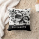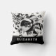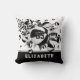 Esta fresca almohada de lanzamiento de baloncesto chica presenta una "explosión" de baloncesto en blanco y negro de diferentes tamaños y formas de estrella gris y negra, sobre la cual puedes personalizar su número de camiseta - la estrella negra tiene un pequeño patrón de puntos de polka blanco - personalizar el nombre del atleta en una franja de color negro en el borde inferior de la almohada - katz_d_zynes
