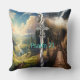 Cruz blanca de plata con personal entre campos tranquilos y valle de la muerte con diseño de tipografía.