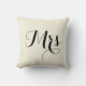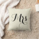 Señora Pillow en negro en color de fondo beige ligero, con la parte posterior negra y ligera rayada del beige. Parte de Sr. y de una señora par. Personalizable. El color de fondo, el texto, y el color de texto pueden ser cambiados.