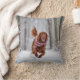 Un perro Setter irlandés con una bufanda de punto corriendo en un bosque de invierno