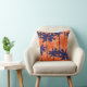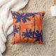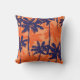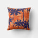 Cojín Decorativo Silueta de palmera azul, fondo naranja