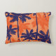 Cojín Decorativo Silueta de palmera azul, fondo naranja