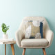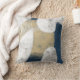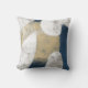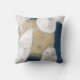 Una gran forma abstracta de azul marino cubre el borde de lona a borde con recortes que revelan un fondo blanco texturado. Una zona beige desgastada y texturada se sienta sobre la forma azul mientras que las líneas blancas se tuercen como cuerda en un acabado dinámico hacia la pieza.