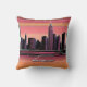 Edificios de la ciudad de Nueva York en el horizonte, rascacielos y estructuras de altura impresas sobre almohadas de tiro.