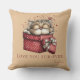 This Love You Fur-Ever throw pillow showcases a sweet sleeping kitten nestled inside a gift box on a warm beige background. The deeper neutral tone adds a cozy, comforting feel while beautifully complementing the soft reds and gentle illustration style. Designed for cat lovers who appreciate calm, inviting interiors, this pillow blends effortlessly into modern, boho, or cozy home decor.