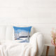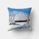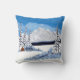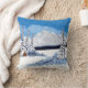 Una almohada de tiro con una hermosa escena de invierno que incluye montañas nevadas, cabaña rústica y verduras cubiertas de nieve. El texto se puede personalizar o eliminar. Obra de arte original de W.B.