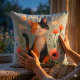 Cojín Decorativo Sonriendo gato calico en un jardín floreciente
