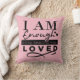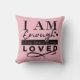 La almohada dice: Soy (fuerte, hermosa, amable) Amado, de un lado (color de fondo personalizado). Del otro lado están dos encantadores corazones, (color de fondo personalizado). Cortesía de hungryjpeg/Diseñado por Janet Palaggi