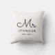 Para la novia y el novio, esta almohada decorativa incluye "Sr." y "Sra." en una fuente elegante y moderna junto con un apellido y fecha. Es un regalo perfecto para la ducha de novias o la boda.