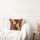 Esta encantadora almohada tijera decorativa presenta un diseño colorido de dahlias brillantes de colores rosa, amarillo, naranja, oro, fuschia y marrón sobre un fondo negro. Se llaman estrellas porque, a diferencia de los dahlia tradicionales, los pétalos tienen una forma de estrella puntiaguda. La imagen se repite en la parte posterior.