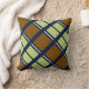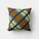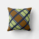 Stripes and squares preppy throw pillow. A perfect addition to a contemporary or preppy living room with a navy background and brown and olive stripes and squares.