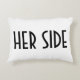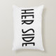 "Her Side" escrito con un tipo de letra inspirado en el Art Deco sobre almohadas lumbares. "Su lado" también disponible.