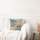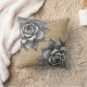 Esta almohada de tiro tiene dos suculentos grises colocados sobre un fondo variado de color marrón.