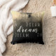 En la parte delantera de la almohada, "Dream" aparece en un guión audaz superpuesto sobre filas de repetidas letras simples, ambas en blanco, y señala la importancia de soñar en sus muchos significados. Este mensaje motivador y inspirador aparece en un diseño natural de tono "sepia" en taupe, marrón oscuro y beige. Al revés de la almohada, la palabra "sueño" se repite en diagonal.