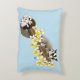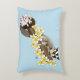 Un lindo planeador de azúcar sentada Gina una rama de árbol con flores pequeñas amarillas, rosas y blancas. El planeador de azúcar y las flores están todas dibujadas en un fondo de tatuaje al estilo bin azul