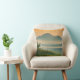Atardecer sobre el paisaje tropical indonesio con montañas y campos de arroz.