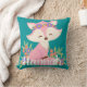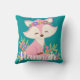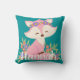 zorro rosa dulce con flores sobre fondo azul verde azulado. Personalización con nombre o mensaje especial en letra de escritura moderna