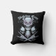 The centerpiece features a menacing central skull with a stitched forehead, flanked by two smaller skulls engulfed in stylized purple flames. A fourth skull sits below them, anchored by two crossed skeletal hands flashing the "rock on" sign.