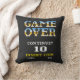 The design features massive, pixelated "GAME OVER" typography with a classic blue-to-gold metallic gradient, mimicking the look of 90s arcade cabinets. Centered below is the iconic prompt "CONTINUE?" followed by a bold white "10" second countdown timer.