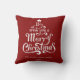 Le deseamos un Cojín decorativo Rojo personalizado de Feliz Navidad. Un gráfico de Navidades festivos Pillow con un mensaje clásico en forma de árbol de Navidad divertido sobre un fondo rojo.