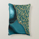 An elegant pattern of gold and leopard spots on a teal blue background combines with teal agate trimmed with faux gold glitter in this luxurious accent pillow.