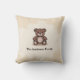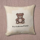 Una almohada con el ilustracion de un oso de peluche sobre un fondo manchado. ¡Una buena idea de regalo para una familia o un niño!