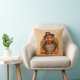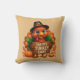 This holiday throw pillow is shown with a Happy Turkey Day print.