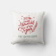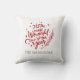 El diseño de la almohada decorativa de temporada presenta un moderno texto rojo "Es el momento más maravilloso del año" con texto personalizado verde que se puede personalizar con su apellido. Verdor, copo de nieve y acento de estrella en el diseño. Color de fondo blanco.