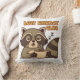 A playful square pillow capturing the charm of tired days and relaxed raccoon energy.