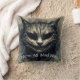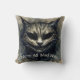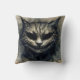 La almohada de hilera muestra el texto "Todos estamos locos aquí" con acuarela felina de un gato siniestro de tonos neutros y oscuros. El texto es personalizable/extraíble. ¡El gato malvado recuerda al misterioso y sonriente gato de Cheshire de la obra maestra clásica de literatura infantil de Lewis Caroll, Alicia's Adventures in Wonderland! Fantástico para Halloween o en cualquier momento, para los fans de gatos y sombras.