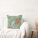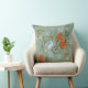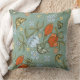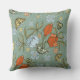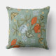 Hermosa almohada verde azulada vibrante, roja y amarilla con tulipanes y mariposas.