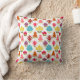 Esta almohada tiene un diseño moderno de mediados de siglo de flores hechas de cuadrados, óvalos y diamantes que han sido manipulados para formar flores.