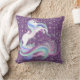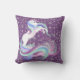Unicornio rosado, púrpura, azul, blanco y de plata hermoso en un fondo de estrellas de la plata (efecto del purpurina) y de un fondo púrpura. Una almohada de tiro imponente para el dormitorio de un chica.