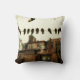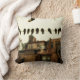 La escena urbana con aves y casas en la ciudad haría una agradable almohada de decoración de estilo industrial o urbano.