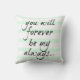 Cojín decorativo con cita sobre amor/relaciones especiales: usted será para siempre mi siempre; texto negro en la menta y las rayas blancas