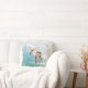 La almohada de las vacaciones acuáticas tira un hermoso alce con el fondo de la escena invernal. Personalice el texto en personalizable con una letra marrón moderna. El fondo de la almohada es el escenario de fondo del invierno solamente