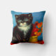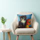 Almohada con un hermoso gato Van Gogh tuxedo! Este pequeño gatito se encuentra junto a una cesta de flores naranjas sobre una mesa roja. ¡Un gran regalo para los amantes del gato y para los coleccionistas holandeses de arte!