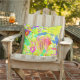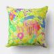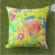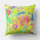 Esta almohada combina tonos cálidos en verano, amarillos, verde lima, rosa, naranja, turquesa, agua, negro, coral, azul y más. Usé capas sobre capas de colores y texturas en diversos grados de opacidad para dar esta profundidad y lo más importante... ¡DIVERTIDO!