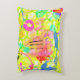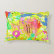 Esta almohada combina tonos cálidos en verano, amarillos, verde lima, rosa, naranja, turquesa, agua, negro, coral, azul y más. Usé capas sobre capas de colores y texturas en diversos grados de opacidad para dar esta profundidad y lo más importante... ¡DIVERTIDO!