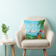 Las ilustraciones de Digitaces de una playa tropical con un loro del macaw se encaramaron en una guitarra y un hidroavión del albatros en la bahía.