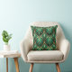 Double-sided throw pillow featuring vibrant tropical leaves and orange flowers on a dark background. The design conveys a lively, exotic feel.