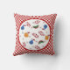 Este Vintage Fruit Pillow presenta un diseño de frutas vintage o retro bordeado de gingham roja. ¡Ideal para tu decoración de campo o de época!