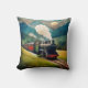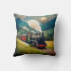 Esta almohada cuenta con un vintage tren de vapor contra una majestuosa vista a la montaña.
