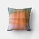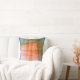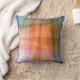 El diseño abstracto original de este Cojín decorativo de 16" se hizo a partir de una fotografía original de ZoeSPEAK. Sugiere una vista, a través de una ventana, de un paisaje. El conjunto está decorado en tonos azules y los tonos naranjas y verdes, con tonos amarillos y rosas claros. Hay bandas lineales con agujeros perforados en ellas atravesando el diseño.