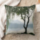 Un hermoso paisaje de un lloroso sauce contra el telón de fondo de las montañas.