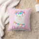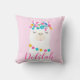 Esta dulce almohada de vivero presenta una adorable llama ilustrada con borlas coloridas y detalles de pompón sobre un suave fondo rosa. El nombre personalizado del niño se muestra en una hermosa letra script fluida, lo que la convierte en un recuerdo monograma destacado. Un acento encantador para un vivero, dormitorio o sala de juegos con tema de llama. Personalice el nombre para un regalo verdaderamente especial.