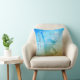 Este chica deportivo lanza almohada de voleibol playa con la imagen conceptual de una jugadora de voleibol que salta a una red de voleibol en la playa, con un texto personalizado que dice: "arena, surf y cielo... y voleibol" - los gráficos de voleibol mezclados incluyen un voleibol y la jugadora de voleibol femenina de silueta superpuesta sobre un fondo de degradado turquesa, blanco y marrón claro un cielo azul claro, el océano y una playa de arena - personalizar con su monograma y nombre delante y detrás - de katz_d_zynes