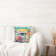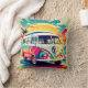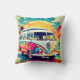 A throw pillow with a lookback at the 1960s when VW vans were the rage on American Highways.