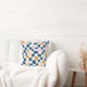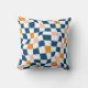 Una interpretación moderna del diseño clásico del tablero de ajedrez, con olas ondulantes en azul marino, naranja y melocotón suave en un fondo blanco y nítido. Este patrón trae un sentido de movimiento y vitalidad a un motivo geométrico atemporal.